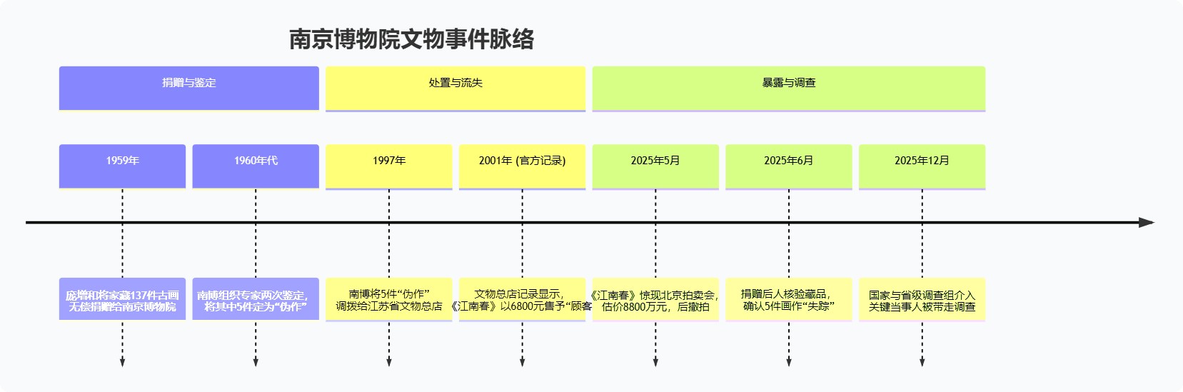 关于南京博物院“文物失踪”并现身拍卖行的事件,其核心是一批由收藏家后人捐赠的珍贵书画,在未经告知捐赠方的情况下,被博物馆鉴定为“伪作”并处置,后以极低价格流出,最终在拍卖市场被标出天价。