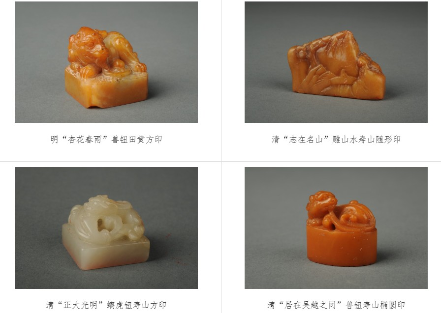 展览分为奇石竞辉、巨擘珍玩、诗词言志、书斋雅号四大部分,精选济南市博物馆藏石章精品110件,既有寿山芙蓉石、牛角冻、昌化鸡血石、青田石、田黄石等稀世名贵石材,又有近代名人丁佛言、王献唐、仇道南藏石,还包括众多诗文鉴赏印及书斋雅号印,掌玩间可见雕工之精湛,方寸间透视出万千社会百态。除博物馆及专业收藏者外,已很难见到这些稀世印章。让我们穿越方寸之间,一同领略奇石妙章背后的百态人间。