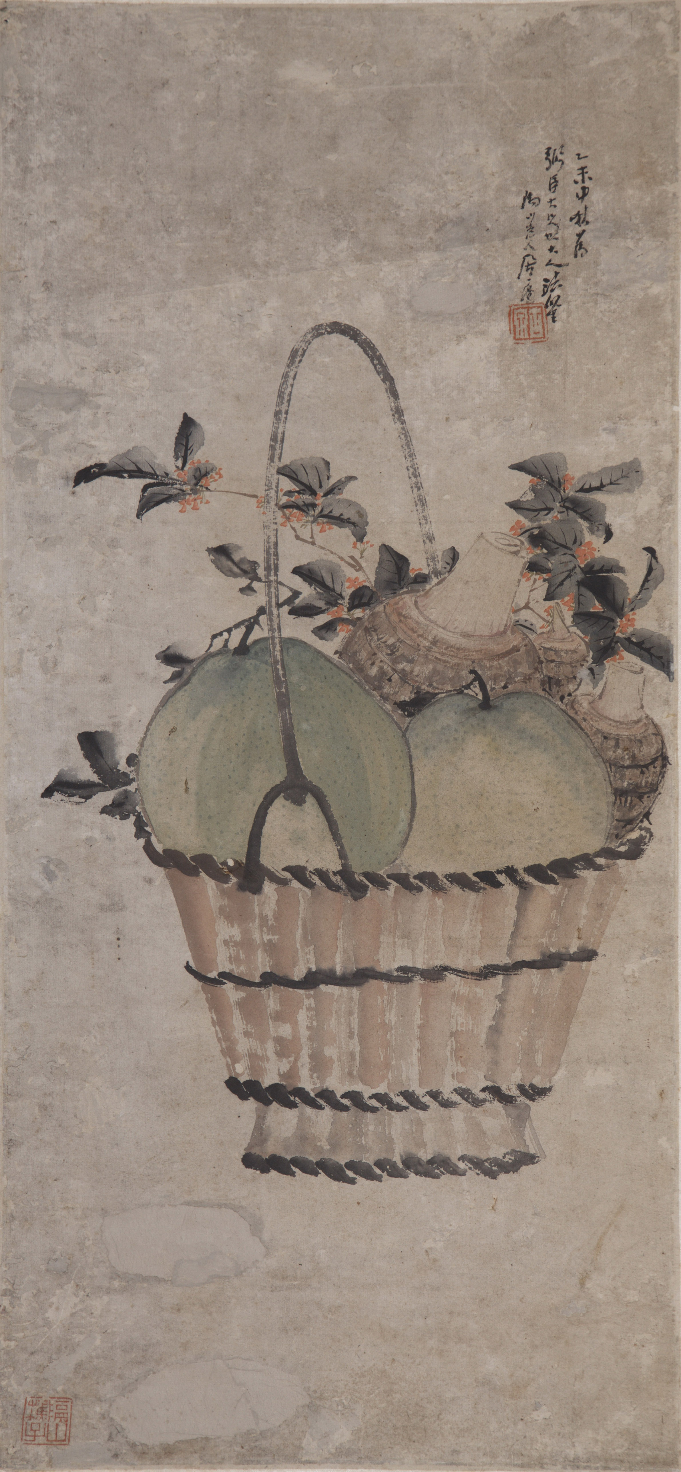 清居廉秋实图轴是清代晚期岭南著名画家居廉的精品之作,尺寸为66×30.5厘米,纸质绘画,现藏于广东省博物馆。居廉(1828-1904),字士刚,号古泉,别号隔山樵子,广东省番禺县隔山乡人,与其从兄居巢并称"二居",在广东绘画史上享有盛名。居廉擅画花鸟、草虫及人物,尤以写生见长,在继承和发展恽寿平没骨画法基础上,广泛运用了撞水和撞粉法,开艺术新风。这套秋实图轴以秋季丰收为主题,展现了居廉独特的艺术风格和精湛的绘画技艺。秋实图是中国传统绘画中的经典题材,寓意丰收、富足和吉祥。居廉在这幅作品中运用其标志性的"撞水撞粉"法,通过精细的笔触和独特的构图方式,营造出一种清逸出尘的意境。画面中描绘的秋季果实,不仅形态逼真,更通过墨色的浓淡干湿变化,使画面更加生动传神,展现出岭南地区秋季丰收的景象。居廉对岭南绘画有着深远的影响,他的学生包括开创"折衷画派"(后世称"岭南画派")的高剑父、陈树人等人。这幅秋实图轴不仅展示了居廉高超的绘画技艺,也为研究岭南画派和清代花鸟画提供了重要资料,具有极高的艺术价值和历史价值。