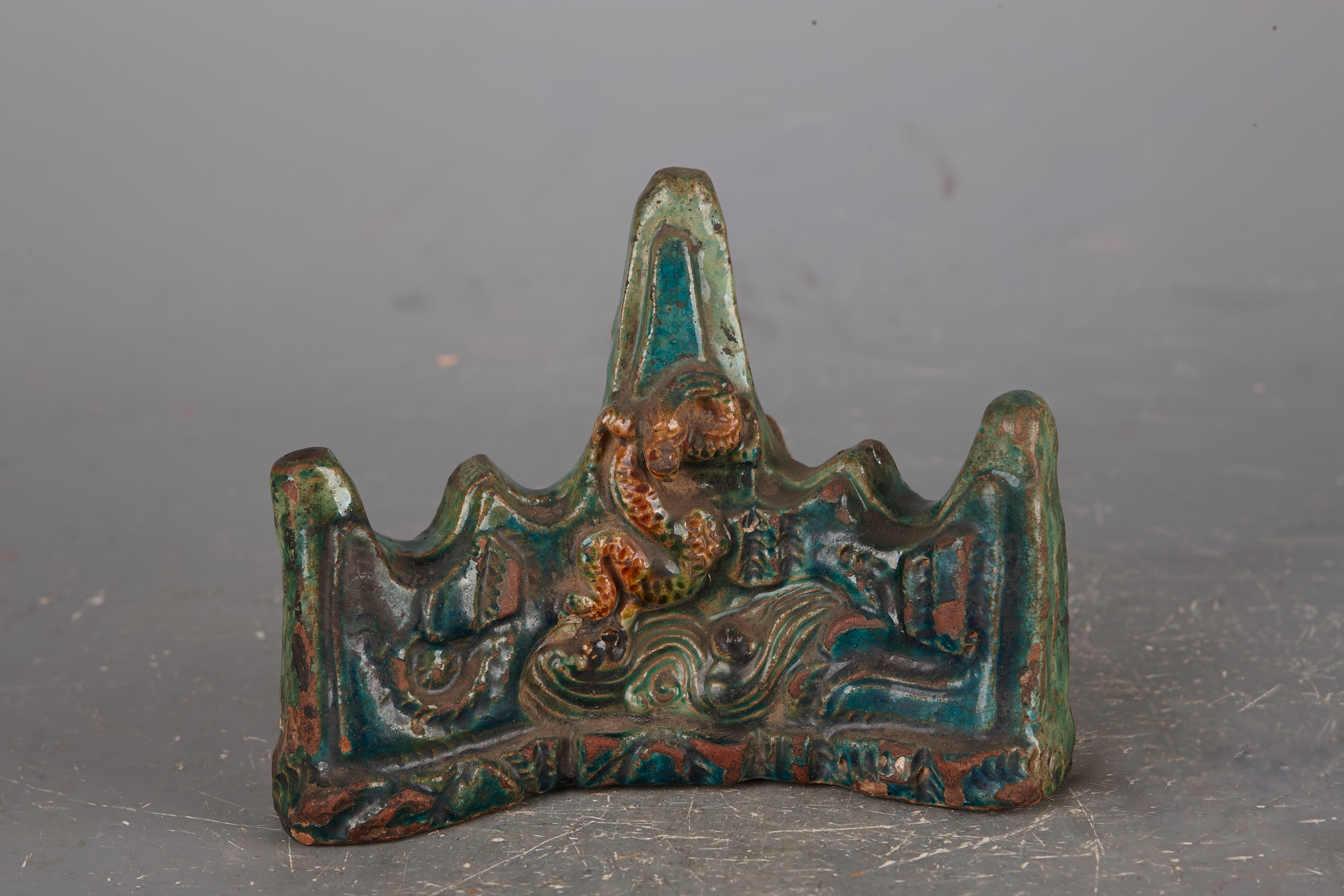 明珐华窑笔架是明代珐华窑烧造的陶器文房用具,尺寸为高10厘米、口径13厘米,质地为陶,现藏于广东省博物馆。这件笔架体现了明代珐华器工艺的独特魅力和文房雅玩的精致品味。珐华器又称珐花器或法花器,是汉族传统工艺美术品,始于元代而盛于明代,以其色彩艳丽、线条生动、形象简练而著称,是一种具有独特装饰效果与民族风格的陶瓷彩绘品种。珐华器的制作工艺采用"堆筋立粉"技法,即在陶胎表面用带管的白色泥浆袋勾勒出凸线的纹饰轮廓,高温烧制后,在地子上施黄、绿、紫、蓝等低温釉,再进行二次烧成。笔架作为文房四宝的辅助用具,主要用于搁置毛笔,是文人书房中不可或缺的雅器。明代笔架材质多样,有瓷、玉、木、铜等,其中山形笔架为明代主流,峰数一般不过五峰。这件珐华窑笔架造型精巧,釉色绚丽,采用珐华器特有的彩绘装饰工艺,纹饰线条凸起,色彩对比鲜明,具有强烈的立体感和装饰效果。珐华器在明代主要用于观赏和陈设,其复杂的制作工艺和艳丽的低温彩釉成为中国陶瓷发展史上具有独特地位的陶瓷品种。这件笔架不仅是一件实用的文房用具,更是研究明代珐华器工艺和文人书房文化的重要实物资料,反映了当时文人士大夫对精致生活的追求和审美情趣。