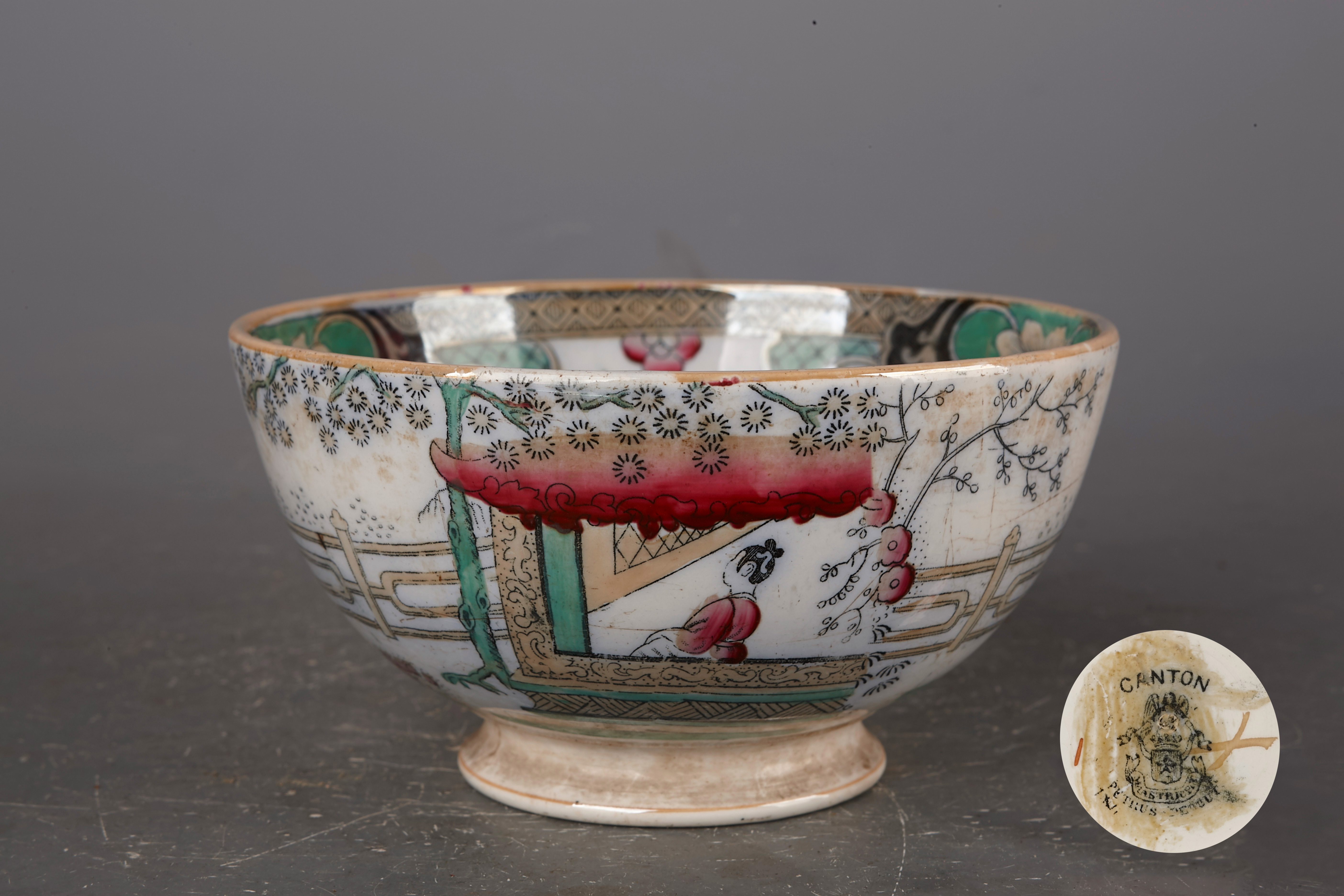 近代广州外销描金彩人物碗是一件清后期至中华民国时期的瓷器精品,高7.5厘米,口径14.5厘米,底径7厘米,现藏于广东省博物馆。这件碗是广州外销瓷的代表作,体现了近代中国外销瓷器的工艺特色和艺术价值。广州外销瓷在清代至民国时期大量出口到欧美市场,以其精美的装饰和独特的风格受到西方消费者的喜爱。描金彩工艺是外销瓷的重要装饰技法,金彩工艺是将金箔研磨成粉,加入矾红、胶等调和后绘制,经高温烧制(700-800℃),无需抛光即显金光。这种工艺要求金彩烧制后亮度一致、笔触完整,成品率仅30%,稀缺性高。人物纹饰是外销瓷的常见题材,碗上绘制的人物故事图案往往具有中国传统文化的特色,如侍女、花卉纹饰等,情趣盎然。这种外销瓷碗器型硕大,在欧洲被用于盛放果子酒类饮品,也被称之为潘趣碗。广州外销瓷的装饰大多具有超越政治和历史的特征,即便西方人不完全理解其中的文化内涵,也能欣赏其图案的实际效果和艺术美感。这件近代广州外销描金彩人物碗不仅展现了清代至民国时期中国瓷器工艺的高超水平,也反映了中外文化交流的历史,是研究中国外销瓷和近代贸易史的重要实物资料。
