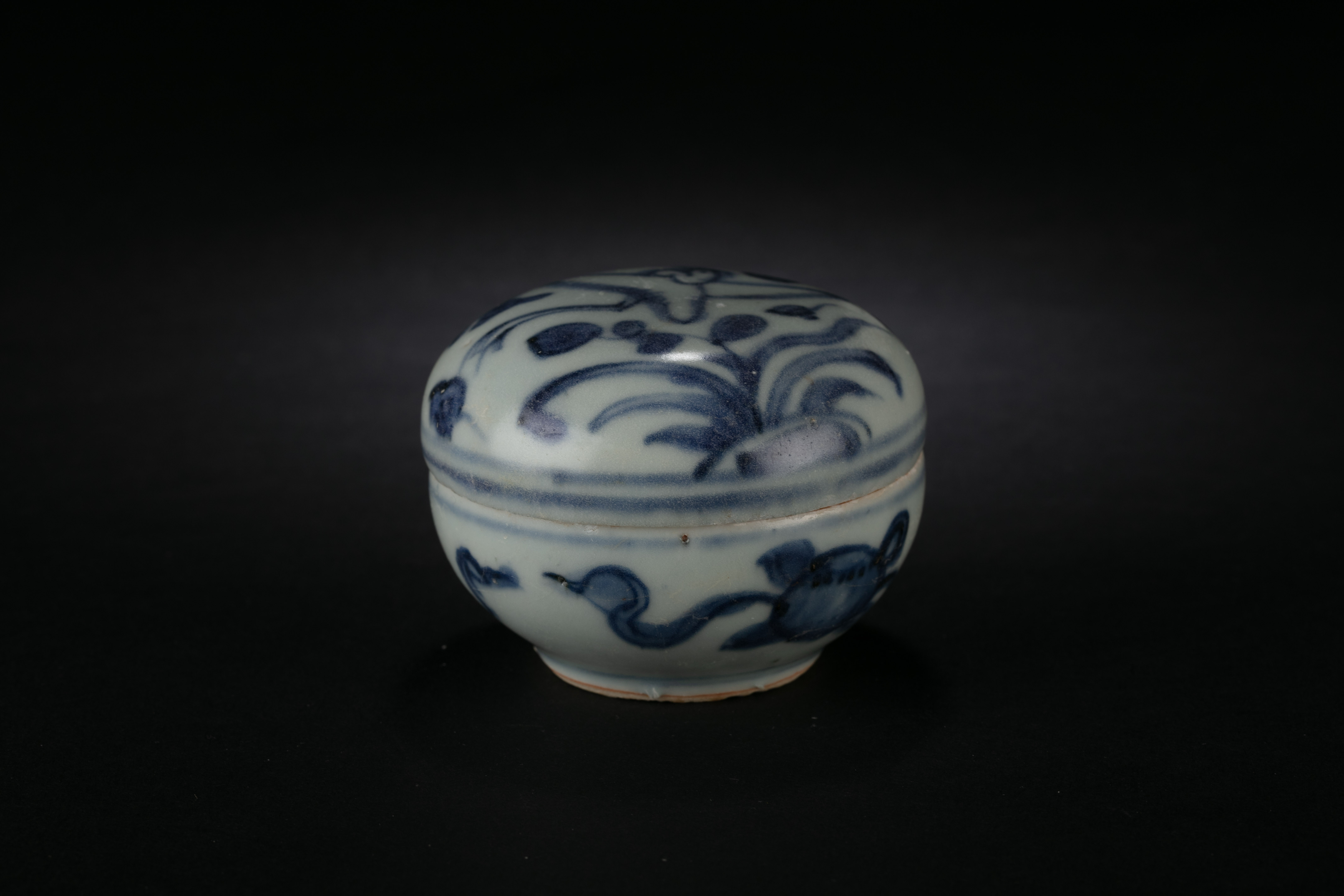 这件明万历青花兰花白鹭杂宝纹瓷盖盒通高5厘米、口径6.5厘米、底径3.5厘米、盖径6.5厘米。胎质细腻洁白,釉色青白莹润,青花呈色浓艳泛紫,体现了万历前期青花瓷的典型特征。盖盒造型小巧规整,盖与盒身严丝合缝,实用性与艺术性兼具。盒身与盖面满绘青花纹饰,主体为兰花、白鹭和杂宝纹组合。兰花象征高洁典雅,白鹭寓意吉祥如意,杂宝纹则增添了装饰的丰富性和喜庆氛围。纹饰描绘精细,线条流畅有力,构图繁密而有序,展现了万历时期青花瓷独特的艺术风格。作为明代中后期的瓷器精品,此盖盒不仅反映了当时制瓷工艺的高超水平,也为研究明代社会文化、审美观念和日常生活提供了宝贵的实物资料。