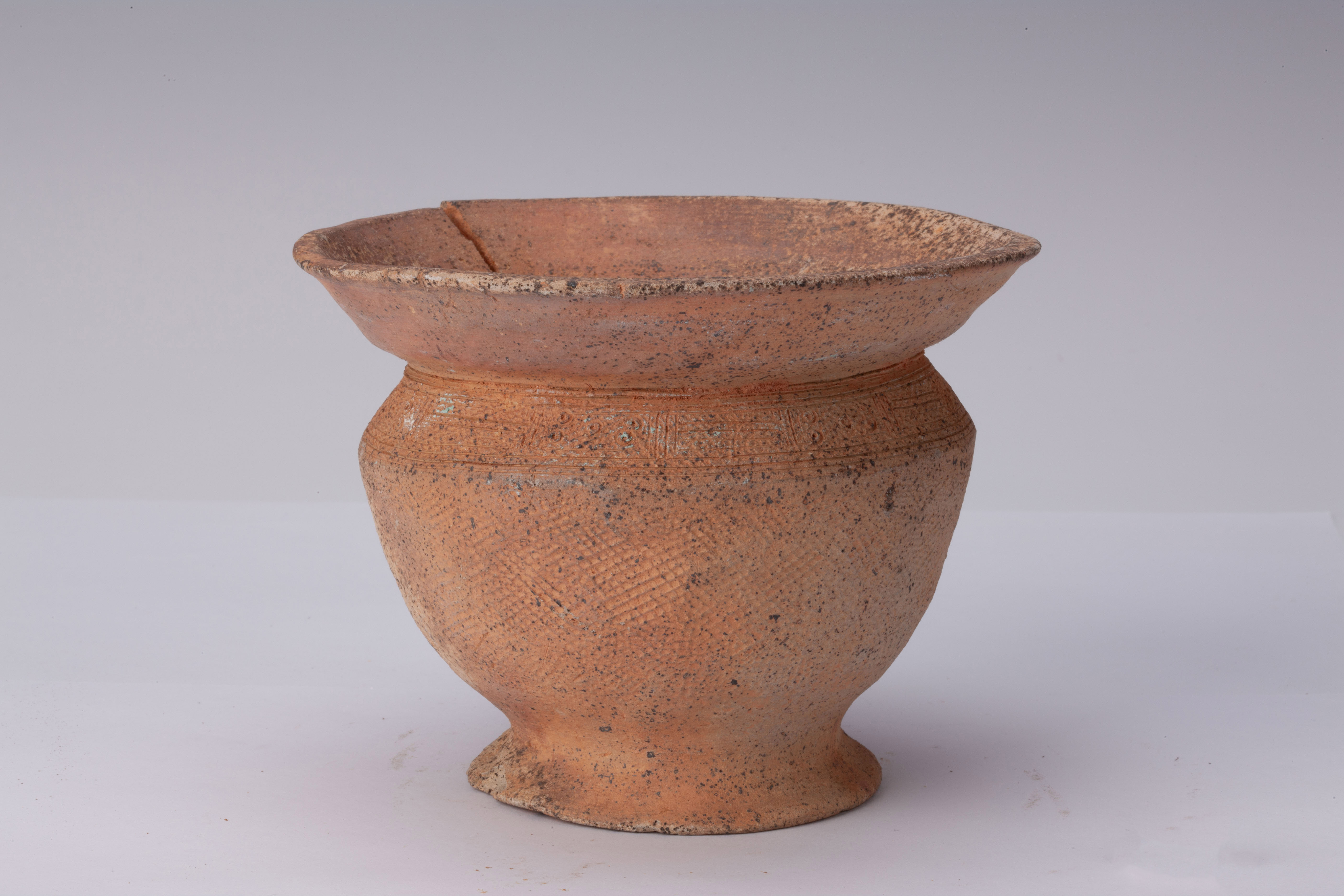 西周早期陶尊是西周时期的重要陶制礼器,主要用于祭祀和宴飨场合。陶尊作为酒器,体现了西周礼乐文化的繁荣发展。西周早期的陶尊造型庄重典雅,通常为侈口、束颈、鼓腹、圈足的设计,器表多饰有弦纹、绳纹等简单纹饰。陶尊的制作工艺精湛,采用轮制成型技术,胎体坚实,烧制温度较高。西周早期陶尊的发现对于研究西周时期的礼制文化、饮食习俗和制陶技术具有重要意义。广东省博物馆收藏的西周早期陶尊保存较为完好,器型规整,纹饰清晰,是研究西周早期物质文化和礼乐制度的重要实物资料,反映了当时社会等级制度和礼仪规范的发展水平。