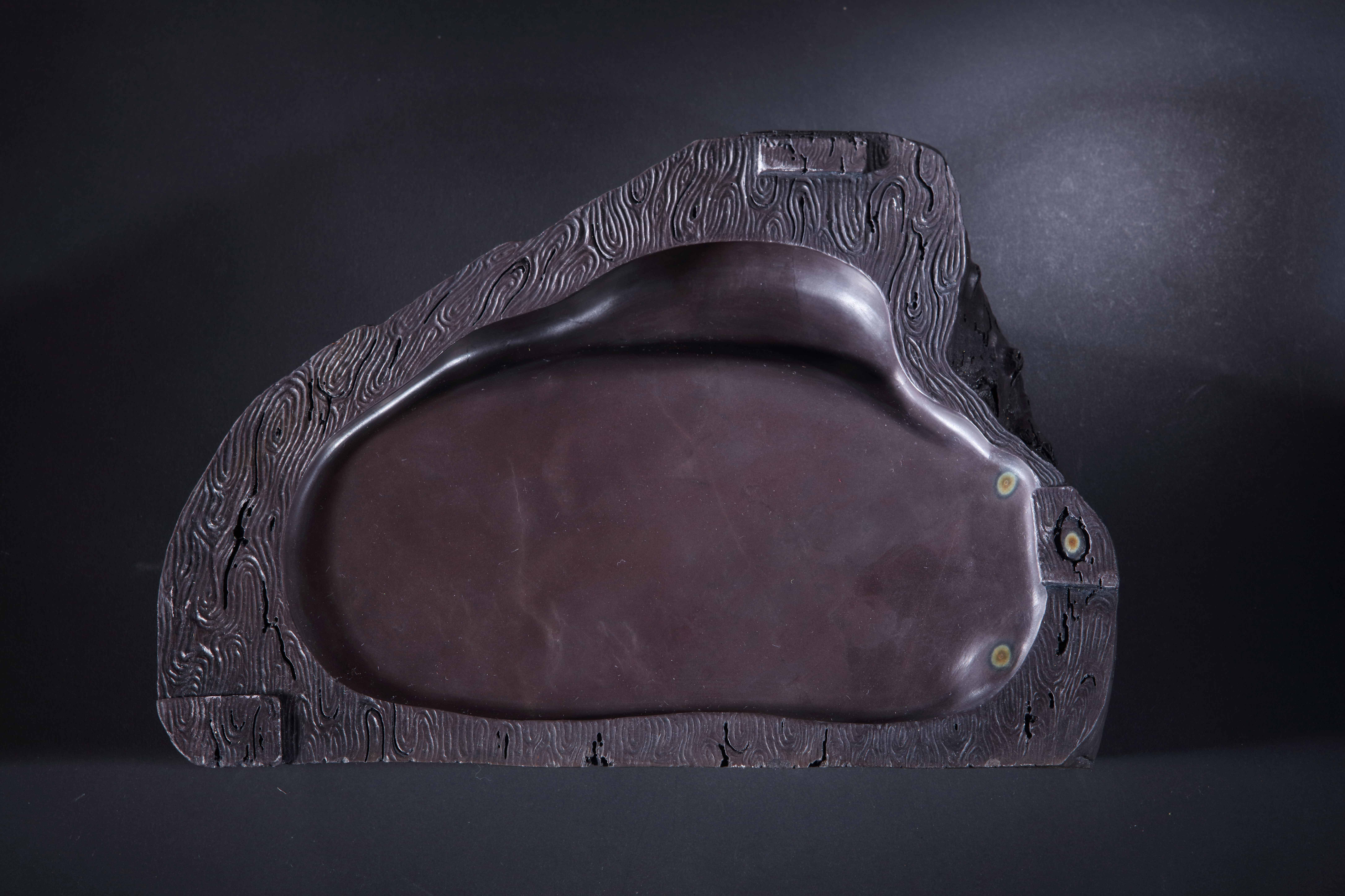 这件2009年程振良制端石根基牢固盖砚,是程振良大师创作生涯中的重要作品。程振良作为程氏第十四代制砚传人,1972年出生于肇庆端州黄岗白石村的端砚世家,从小受祖辈影响对端砚有特殊爱好。他十三岁便跟随父亲及祖父程四、叔父程文学习制砚,师承国家级非物质文化遗产端砚制作技艺项目传承人程文的传统制砚技法。这件根基牢固盖砚含盖长26.5厘米、宽12.5厘米、厚13.5厘米,采用优质端石材质,体现了程振良大师在传统端砚制作技艺上的深厚功底。端砚制作技艺作为广东省肇庆市传统手工技艺,2006年5月20日经国务院批准列入第一批国家级非物质文化遗产名录。程振良的作品以传统技艺为主导,不断融入新风格、新题材,特别注重因材施艺、以形配图、天然造化。这件2009年创作的根基牢固盖砚,其名称寓意深刻,"根基牢固"象征着中华文化的深厚底蕴和端砚艺术的传承有序。盖砚的设计体现了程振良大师对传统端砚形制的创新理解,既保持了实用功能,又赋予了作品深刻的文化内涵。程振良不仅继承了传统端砚制作技艺,更在此基础上创新发展,其作品深受行家、收藏家及国家有关部门的好评和认可,这件根基牢固盖砚正是其艺术成就的重要体现。