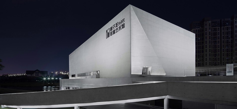 艺术馆由著名建筑艺术家、湖南大学建筑学院院长魏春雨先生及其团队设计,获得2019亚洲建筑师协会建筑奖公共设施-文化及机构建筑类金奖,这也是亚洲地区建筑界最高建筑设计大奖奖项。全馆建筑面积10600平方米,用白色清水混凝土一次性浇筑而成——通过建筑本身来感受影像艺术,是对当下浮华的建筑语言的抵制和颠覆,回归建筑与艺术本质。建筑主体共四层,首层为艺文空间,有艺术品商店、咖啡厅、春夏冬日料、多功能厅、亲水公共展示区、特展厅等;二、三层为4000平米专业艺术展厅,展线长1000米,展墙最高达10米,最长达40米,采用德国Erco专业展陈灯光;四层为藏家俱乐部、图书馆、全套瑞典Profoto顶级高端摄影棚及画廊。